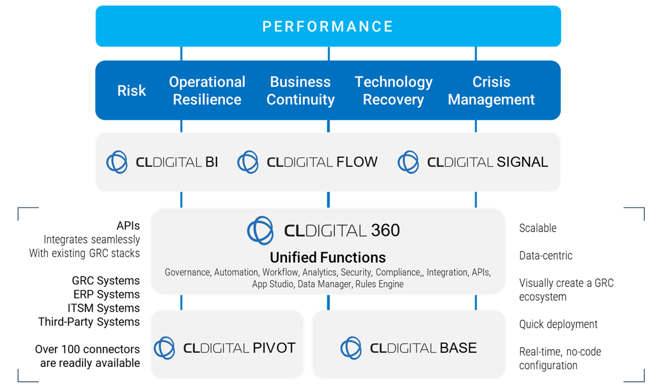 CLDigital 360 was built to help you streamline operations, simplify risk and resilience, and boost performance management in one unified no-code platform.